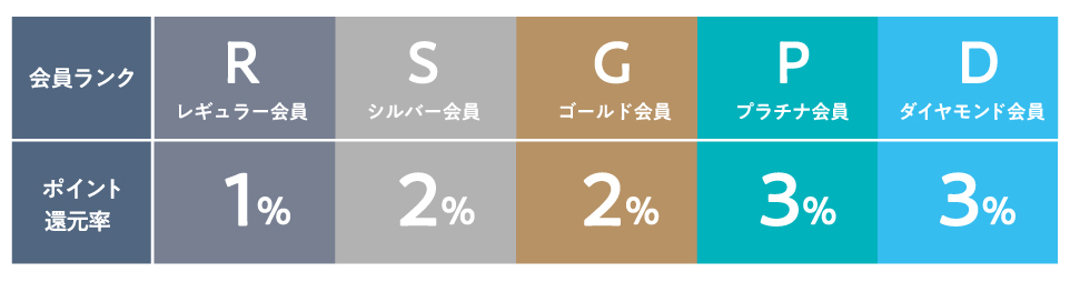 ポイント還元率を見直し、これまでは商品購入額の1%をポイントとして還元しておりましたが、新たな会員ランクでは、会員ランクに応じて、還元率が最大3%までアップします!