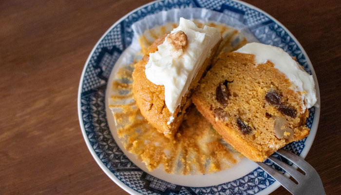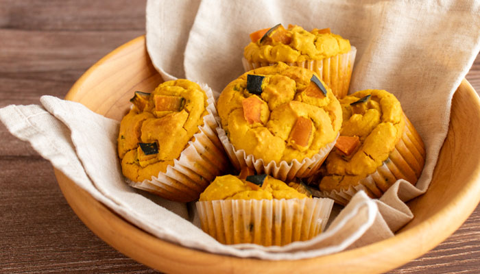 生地にかぼちゃペーストをたっぷり入れたしっとりふかふかのマフィン。