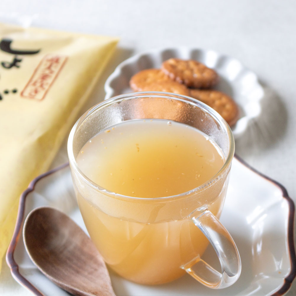 南九州産の本葛粉、山口県産の節蓮根粉末も加え、とろっとやさしい口当たりに。おなかにもやさしいしょうが湯です。
