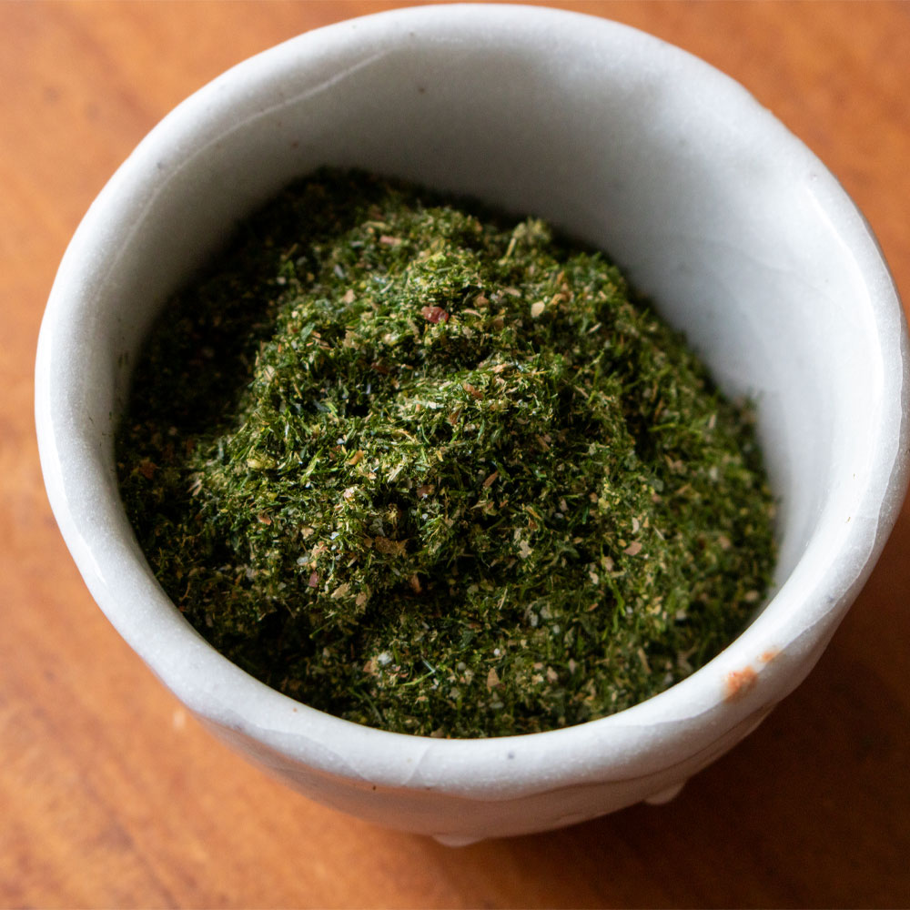 その無駄のない上品な香りと深い旨味は、すじ青のりの豊かな風味と驚くほど相性がよく、ブレンドすることでお互いの魅力が引き立ち合う存在に。