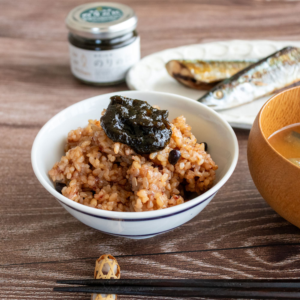 熱々のごはんにのせるだけ。とろっと濃厚な海苔の旨みと甘辛い味付けでごはんがすすみます。