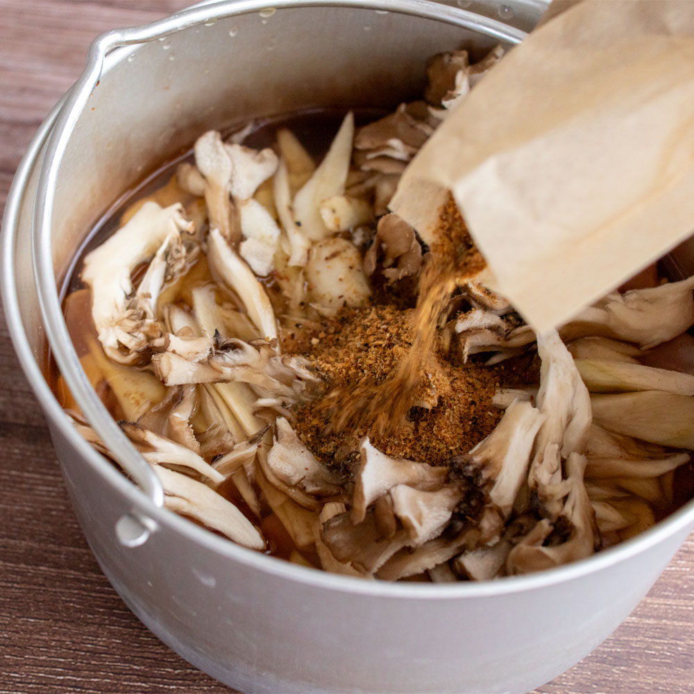 鮮度の良い肉厚な原料を、細かいパウダーではなく、あえて粗く粉砕することにより、エグミ、濁り、臭みのない、 だし本来の旨みが引き立ちます。
