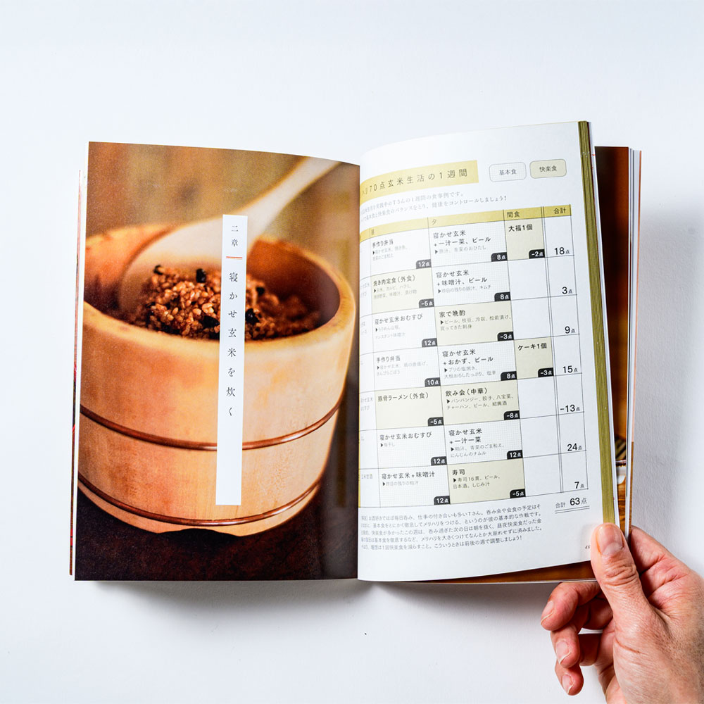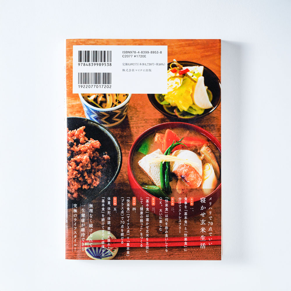 「メリハリ70点寝かせ玄米生活」は、好きな呑み食いをしっかり楽しみながら普段は玄米を食べて体重、体形、健康をキープする、結わえる 式の食事法です。 我慢やストレスのある100点の健康法を目指すより、好きなものは我慢しないメリハリをつけた70点食生活のノウハウ、寝かせ玄米の炊き方、寝かせ玄米に合うレシピなどがぎっしり詰まった一冊です。