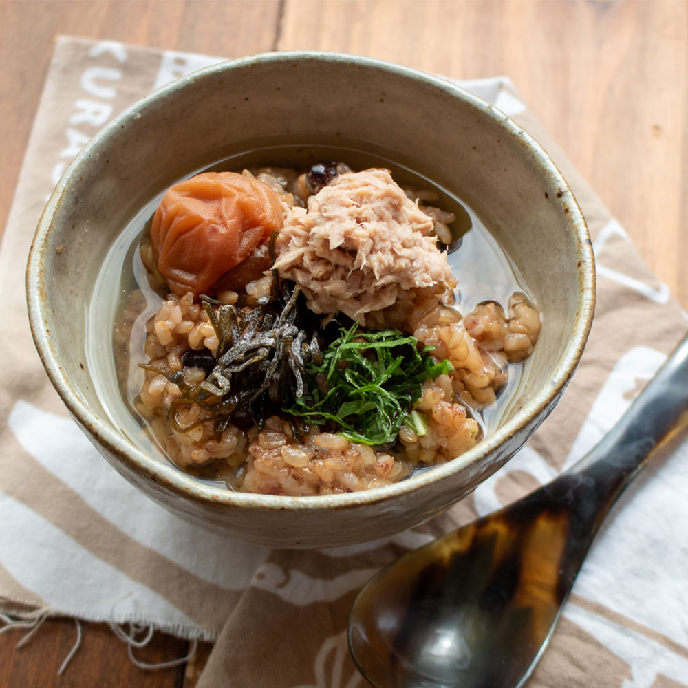 もち麦ブレンドはほのかな香ばしさと甘さがあり、冷汁など汁けのある料理や、混ぜご飯などでも美味しく食べられます。冷めても美味しいので、おむすびやお弁当にもおすすめ。