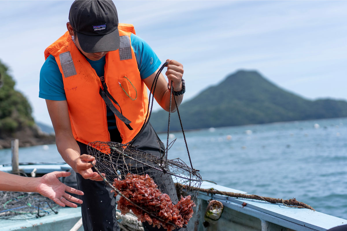 海藻の原料不足や、地域の漁業の衰退といった課題に向き合いながら、海の環境を守る取り組みを進めています。